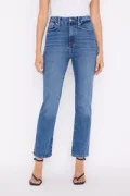 Our high-waisted women’s jeans have a front seam between 9”- 11”, although anything that sits at your true waistline can be considered high-rise. (Your true waistline is the smallest point above your hips, usually at or just above your navel). So, if it’s sitting high and accentuating those curves, you’re on point.