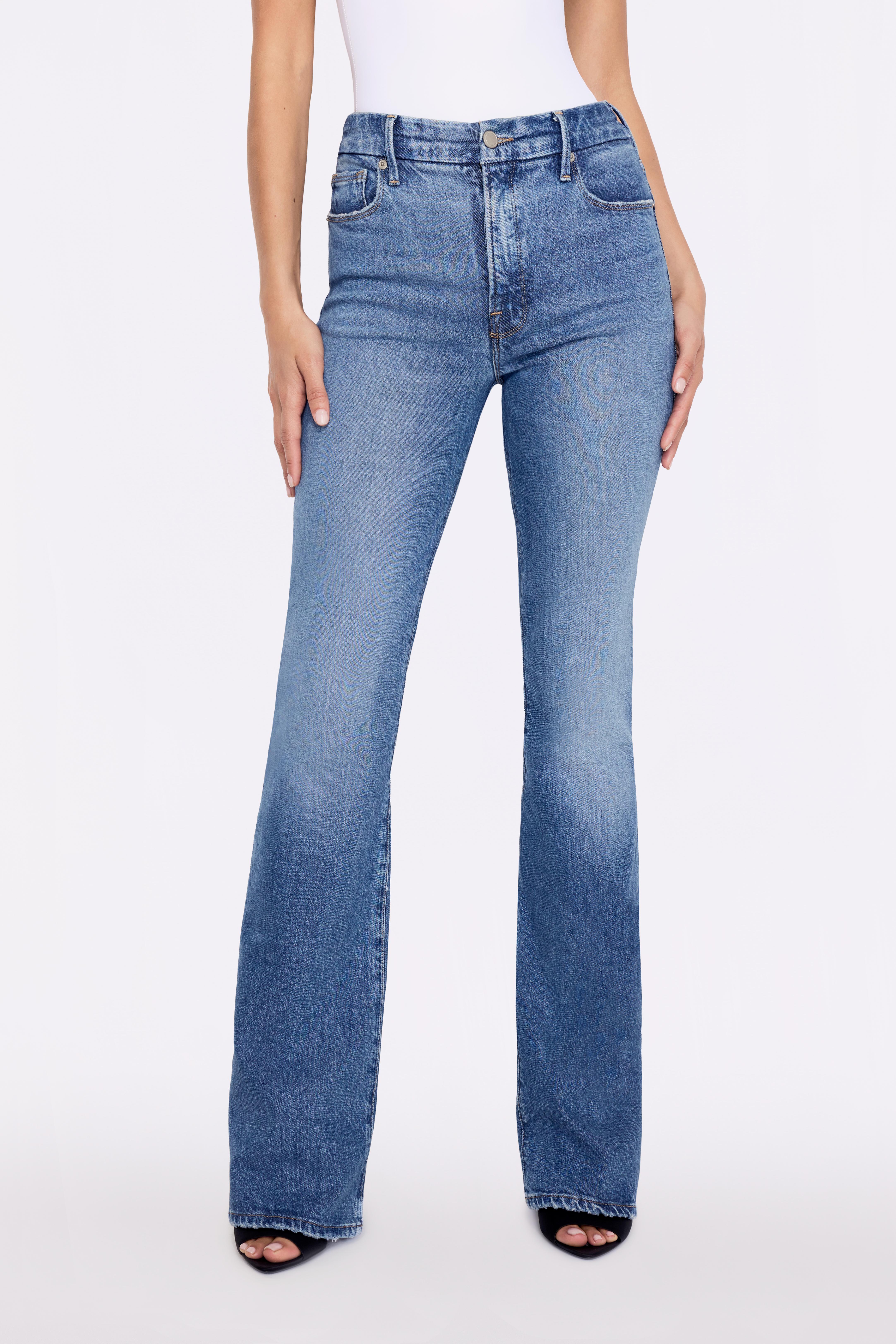 Some styles to try: Our Good Curve jeans feature a high-rise waist designed to enhance your waist, while a contour seam along the thigh and leg highlights your silhouette. The Good Waist Palazzo collection offers a similarly flattering high-rise with a stylish wide-leg cut, available in full-length, cropped, and petite options.